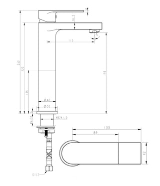 Tall Gun Metal Basin Mixer