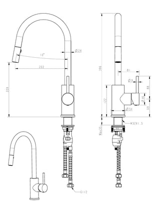 Brushed Gold Pull-Out Kitchen Mixer Brass