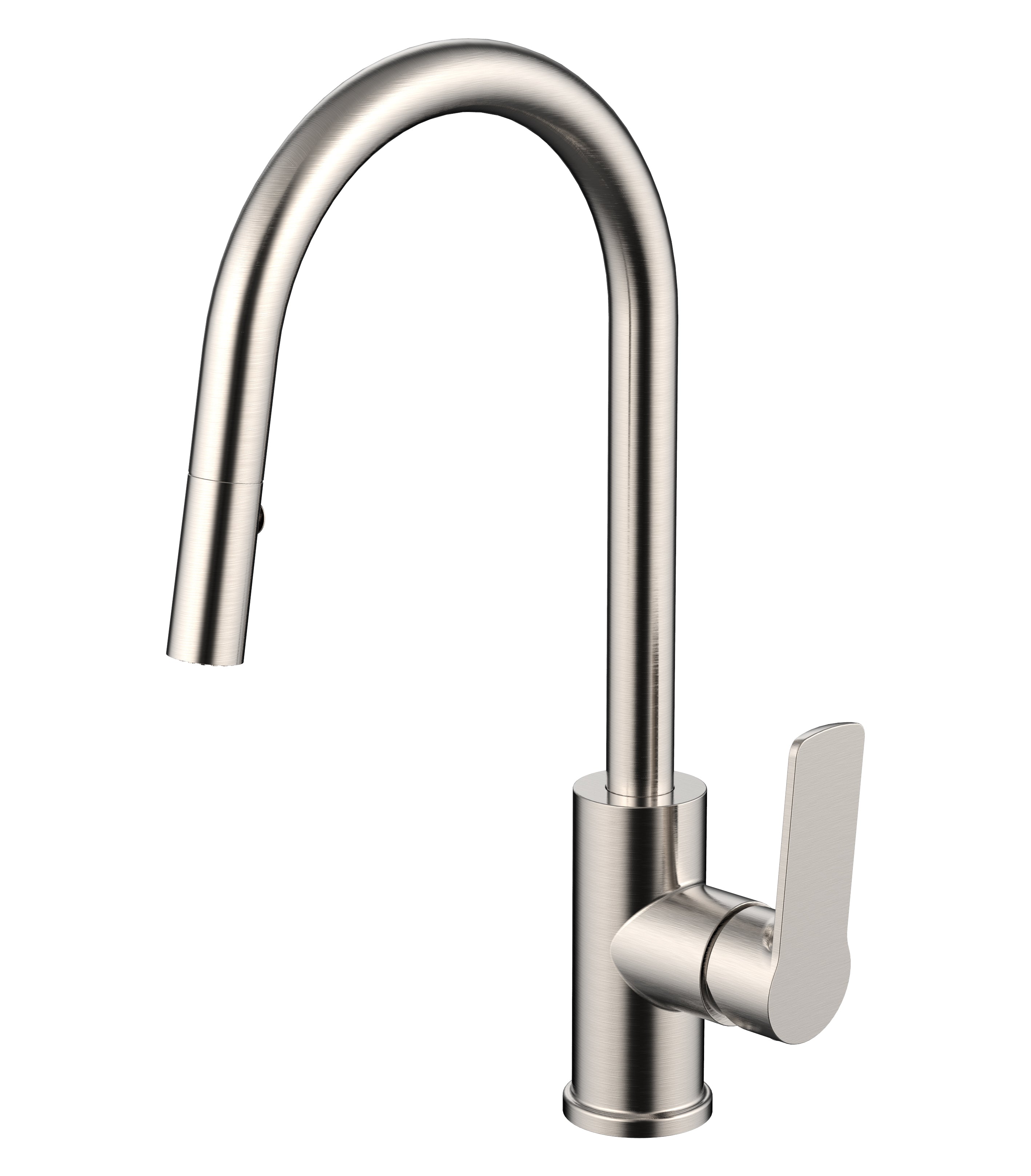 Brushed Nickel Pull-Out Kitchen Mixer Brass